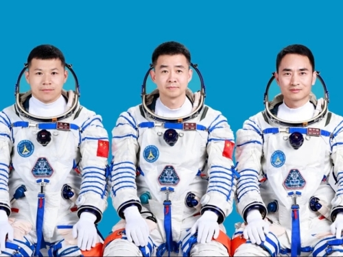2026-012026年1月16日,中国航天员科研训练中心在北京航天城举行神舟二十号乘组与记者见面会。这是神舟二十号航天员陈冬、陈中瑞和王杰“换乘...