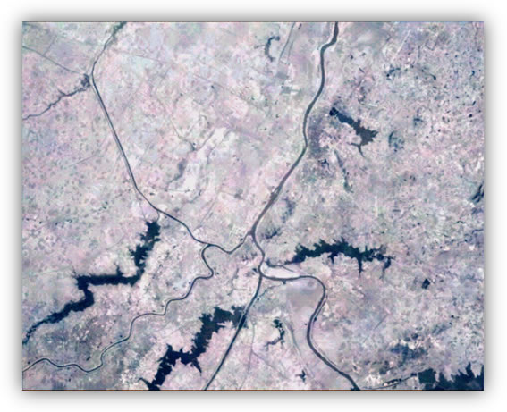 图:伴星对地拍摄 长江三角洲河流水系(局部)