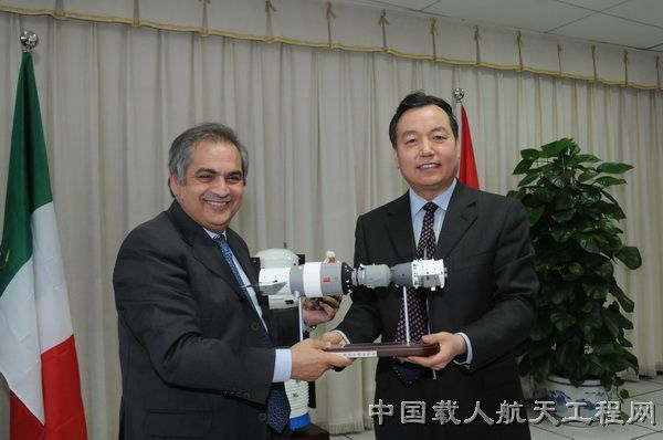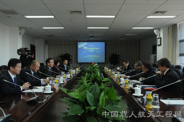王文宝主任首先对意大利航天局代表团的来访表示热烈欢迎,对意大利航天局对中国载人航天飞行任务测控通信工作给予的支持表示感谢。他向客人介绍了中国载人航天工程的发展历程、当前任务、发展规划以及管理情况。王文宝说,中国刚刚完成了天宫一号/神舟八号空间交会对接任务,并已启动实施载人空间站工程,中国的载人航天正按相关规划稳步向前推进。王文宝表示,中国载人航天工程办公室作为中国政府负责载人航天的专项管理机构,愿意与世界各国航天机构加强交流,在载人空间站建设、运行和应用等各方面积极探讨、开展合作,共同促进世界航天技术的发展与进步。