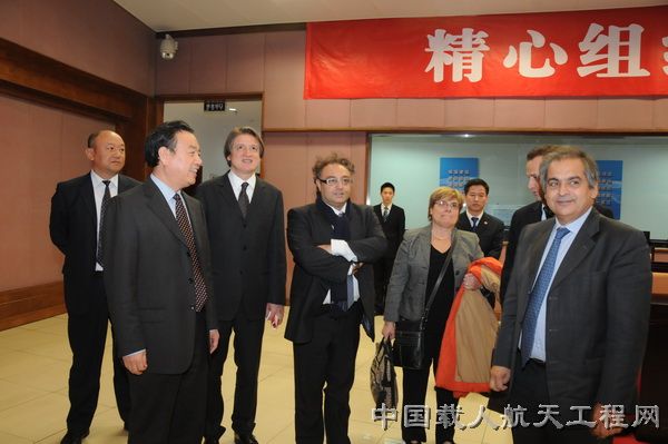 图2:王文宝主任(左二)陪同意大利客人参观北京航天飞行控制中心。 (张智慧 摄)