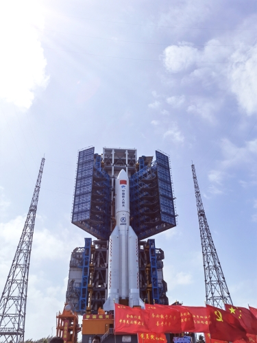 梦天实验舱与长征五号B火箭组合体垂直转运
