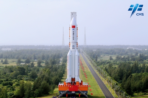 梦天实验舱与长征五号B火箭组合体垂直转运