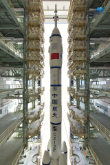 神舟十五号载人飞船船箭组合体垂直转运至发射塔架