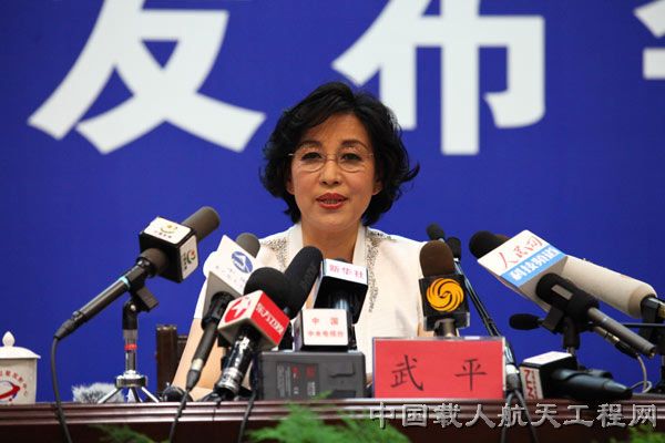 中国载人航天工程办公室新闻发言人武平介绍任务情况。(武向荣 摄)[next]