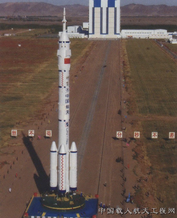 高达58.3米的神舟六号飞船在转运中