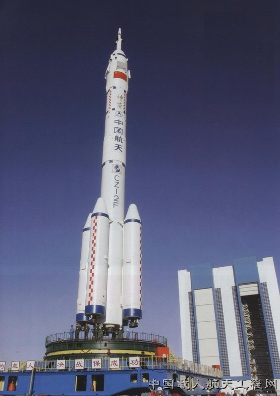 神舟六号船箭塔合体从发射中心垂直总装测试厂房向发射区转运