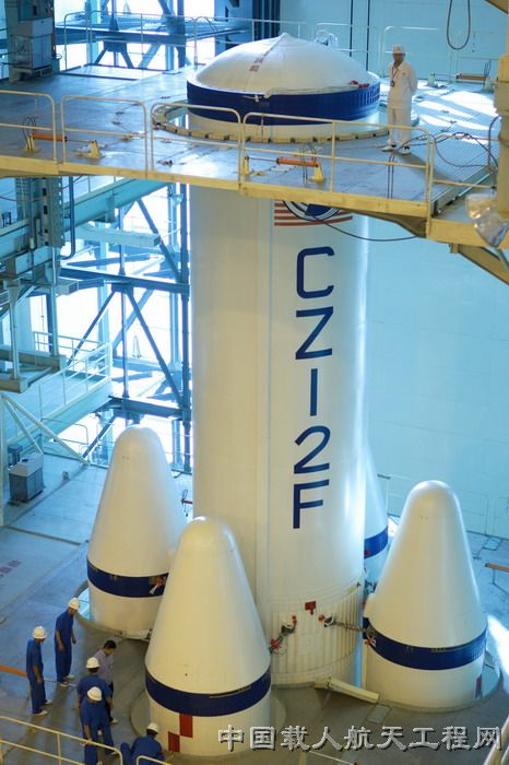 2008年8月10日神舟七号火箭在酒泉卫星发射中心9008厂房垂直总装