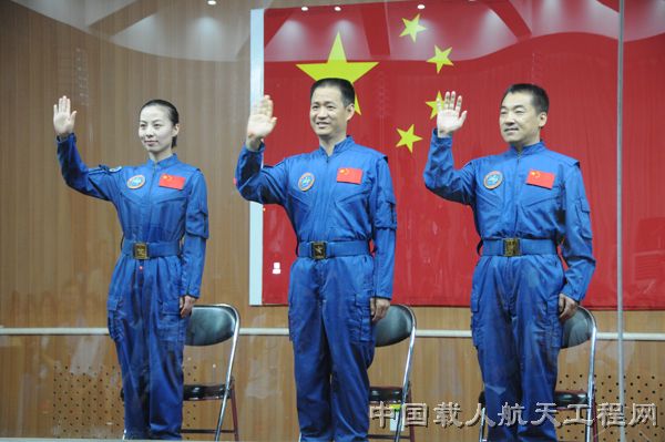 三名航天员从左至右分别是:王亚平、聂海胜、张晓光