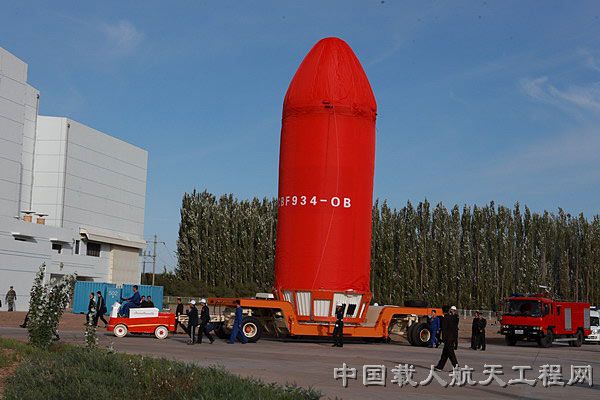 图3:天宫一号转运至垂直总装厂房 (马武威 摄)