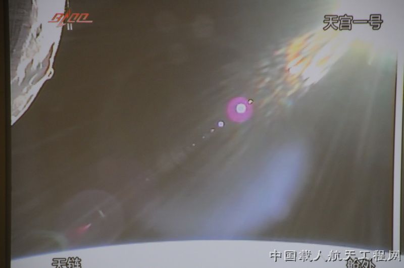 图:天链一号拍摄的天宫一号舱外实景。(张智慧 摄)