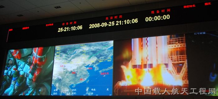 飞船发射瞬间北京航天飞行控制中心指控大厅大屏幕