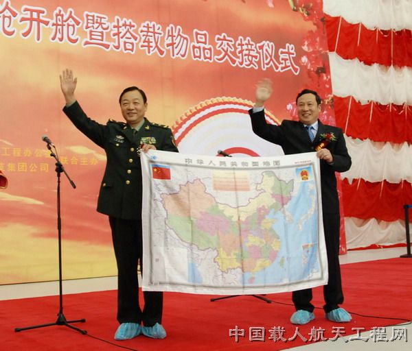 中国载人航天工程副总指挥张建启,中国载人航天工程副总指挥、中国航天科技集团公司总经理马兴瑞,中国载人航天工程总设计师周建平,中国载人航天工程办公室主任王文宝,中国航天科技集团公司副总经理袁家军以及工程各系统的代表与北京市公证处的公证员们共同见证了这一神圣时刻。