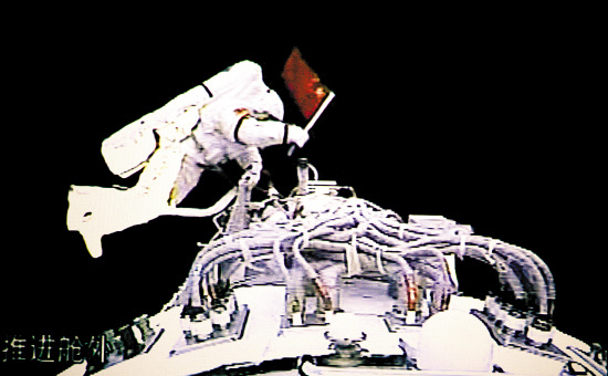 图6-9 神舟7号航天员翟志刚正在舱外活动