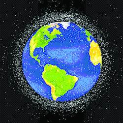 空间碎片是指宇宙空间中除正在工作的航天器以外所有的人造物体,又称轨道碎片或碎片。空间碎片是人类空间活动的产物。近年来,随着人类发射的空间飞行器不断增多,废弃的助推火箭和航天器及其爆炸后产生的碎片不断累积,导致空间碎片的数量越来越多。如今,某些空间区域已经变得十分拥挤,对人类航天活动的危害日渐凸显,空间碎片已成为危害航天器安全的潜在杀手。图2-12是近地空间上的空间碎片分布模型图。