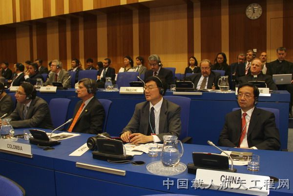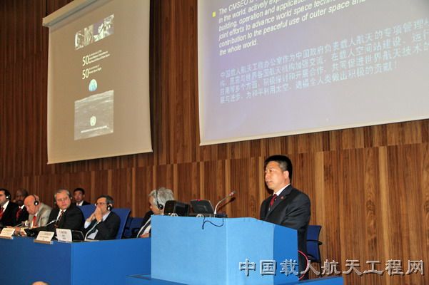 【中国载人航天工程网 维也纳 6月2日】 6月1日,联合国和平利用外空委员会50周年暨人类载人航天飞行50周年纪念大会在奥地利维也纳召开。中国载人航天工程办公室副主任杨利伟、中国载人航天工程副总设计师赵宇棋受联合国外空委邀请出席大会。