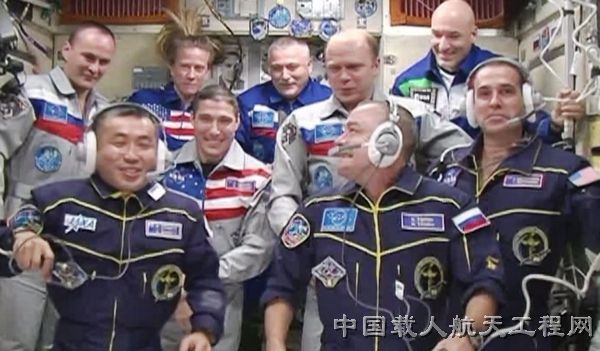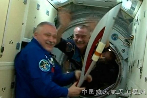 图1:新一期考察团乘员携2014冬奥会火炬进驻国际空间站 (图片来源:中新网)