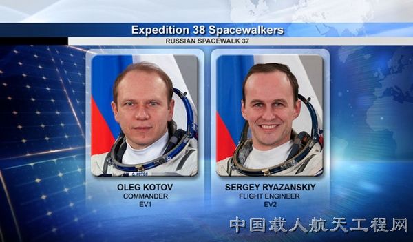 图:在空间站安装摄像头的航天员奥列格•科托夫和随航工程师谢尔盖•梁赞斯(图片来源:俄新网)
