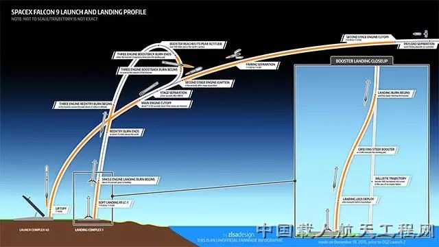图1:“猎鹰”9火箭从升空到回收的轨迹(图片来源:腾讯太空)