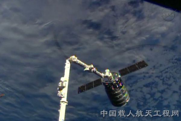 图:国际空间站航天员操纵机械臂捕获“天鹅座”货运飞船进行对接 (图片来源:国际在线)