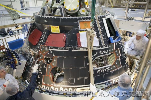 图:工程师正在为“猎户座”飞船安装热防护罩(图片来源:NASA网站)