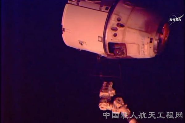 图:“龙”飞船正在与国际空间站脱离(图片来源:美国国家航空航天局网站)