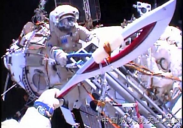 图1:国际空间站两名航天员出舱进行火炬传递 (图片来源:新华网)