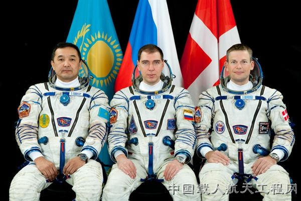 图:(左起)哈萨克斯坦航天员艾登•艾伊姆别托夫,指令长谢尔盖•沃尔科夫,丹麦航天员安德烈亚斯(图片来源:ESA网站)