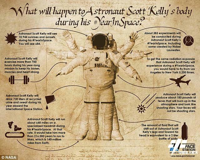 据腾讯网2015年9月17日报道,据国外媒体消息,美国国家航空航天局(NASA)近日发布了一张图表详细解释了在微重力环境中航天员会造成何种影响,比如每日航天员接受的辐射到底有多少,其中一项比较有趣,这就是航天员的排泄物会在大气层中燃烧。