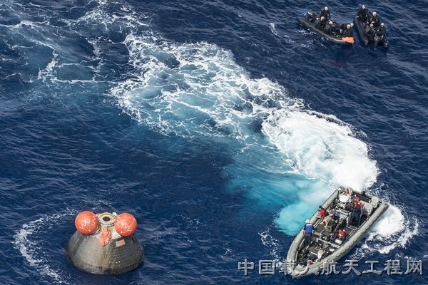 图:“猎户座”飞船进行轨道飞行试验后溅落在太平洋(图片来源:空间飞行现在时网站)