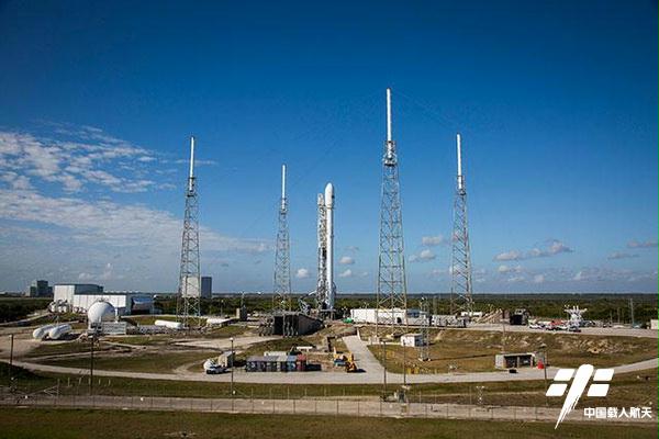 图:发射前的“猎鹰”9火箭(图片来源:腾讯太空)
