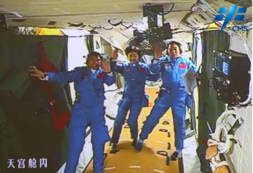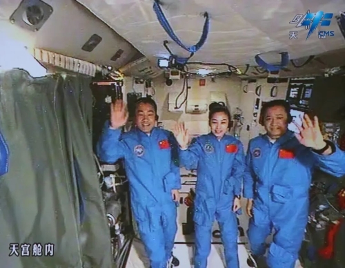 航天员聂海胜、张晓光、王亚平在天宫一号内
