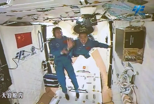 航天员景海鹏、陈冬顺利进入天宫二号