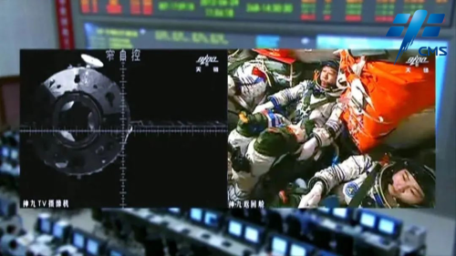 神舟九号航天员乘组执行手控交会对接操作