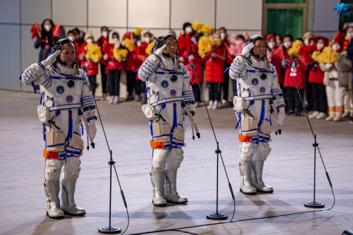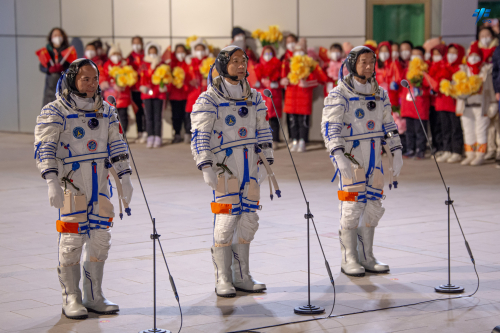 神舟十五号载人飞行任务航天员乘组出征仪式在酒泉卫星发射中心举行 “圆梦乘组”即将踏上飞天圆梦之旅