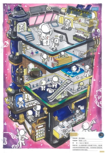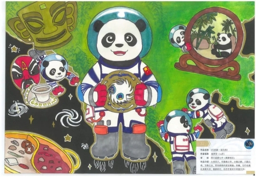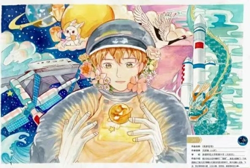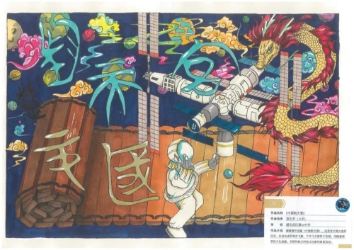 在她的画中,星空、玉兔、祥云、火箭、空问站共同勾勒出孩子们对航天梦的无限畅想。