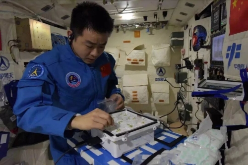 在轨执行任务的神十四乘组将载有拟南芥种子和水稻种子的实验单元安装至通用实验模块中,正式启动国际首次空间微重力环境下水稻“从种子到种子”全生命周期培养实验。