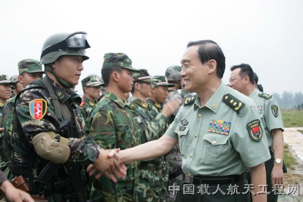 图2:总装备部副部长、载人航天工程副总指挥牛红光亲切慰问参演官兵