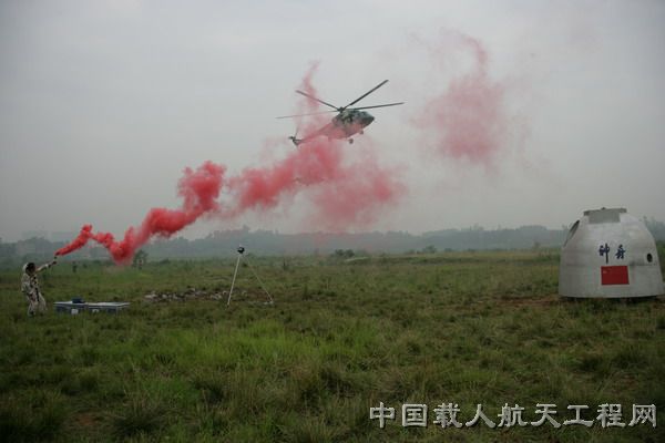 图1:载人航天工程陆上应急搜救演练现场,航天员施放求救信号。