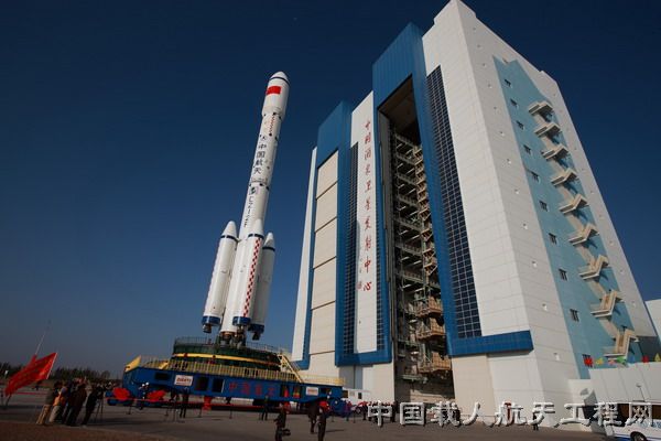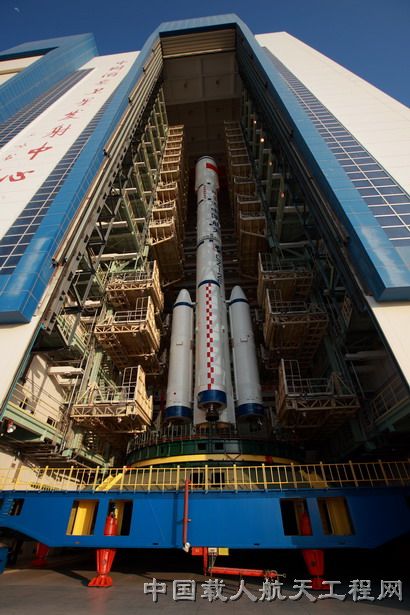 【中国载人航天工程网 酒泉 9月20日】中国载人航天工程新闻发言人今天宣布,我国将实施载人航天工程首次空间交会对接任务,执行任务的天宫一号目标飞行器、长征二号F运载火箭组合体已从酒泉卫星发射中心垂直总装测试厂房顺利转运至发射区。天宫一号将于9月27日至30日择机发射。