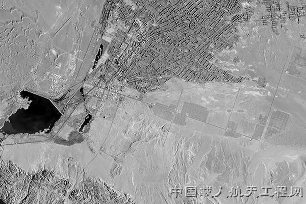 图3:天宫一号传回的甘肃省酒泉市金塔县南部附近高光谱全色影像(局部)