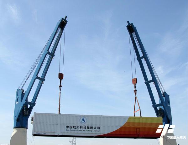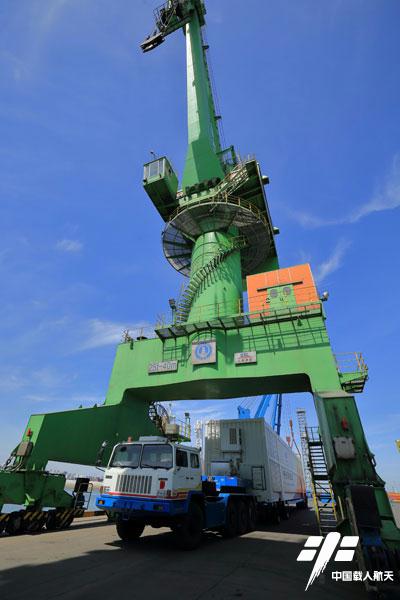 图3:长征七号遥一火箭运抵天津码头。 (杨志远 摄)