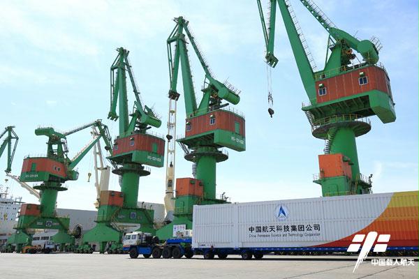 图2:长征七号遥一火箭运抵天津码头。(杨志远 摄)
