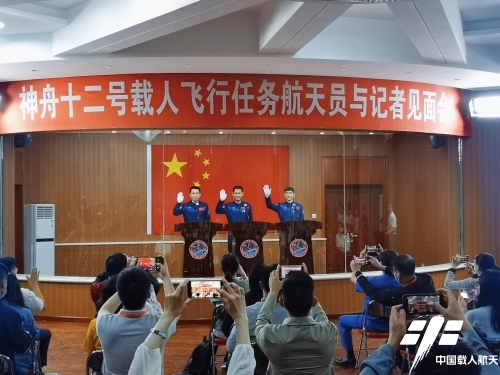 神舟十二号载人飞行任务航天员集体亮相!