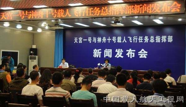 受任务总指挥部委托,由我向大家介绍天宫一号与神舟十号载人飞行任务有关情况。经任务总指挥部研究决定,定于6月11日17时38分发射神舟十号载人飞船,飞行乘组由男航天员聂海胜、张晓光和女航天员王亚平组成,聂海胜担任指令长。今天下午,执行此次发射任务的长征二号F遥十火箭将开始加注推进剂。