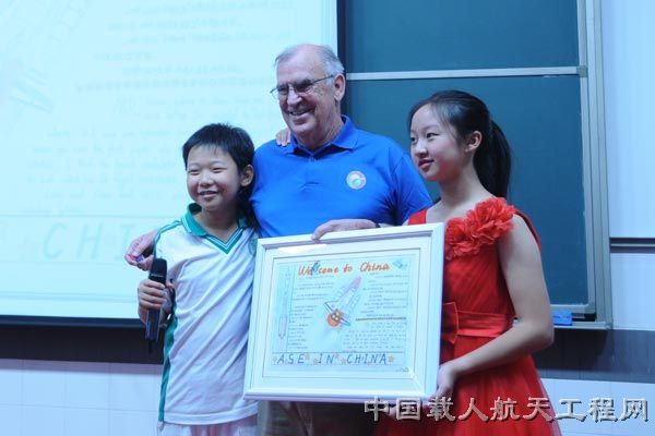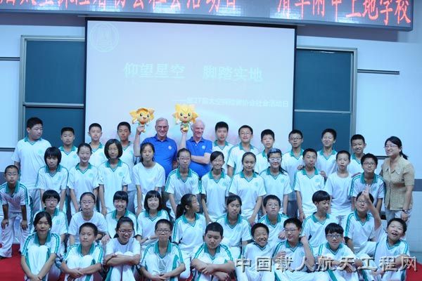 图3:两位美国航天员与清华附中同学合影 (刘爽 摄)