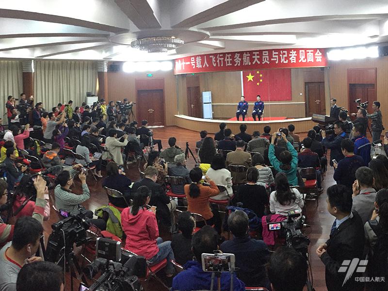 图1:神舟十一号载人飞行任务航天员与记者见面会召开(王远振 摄)