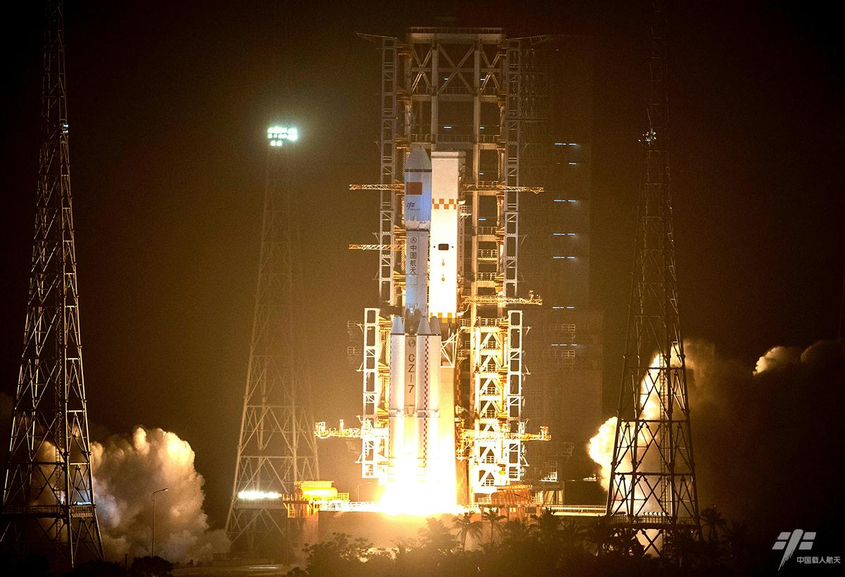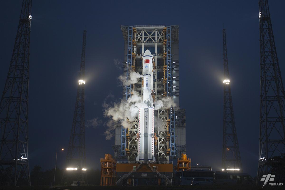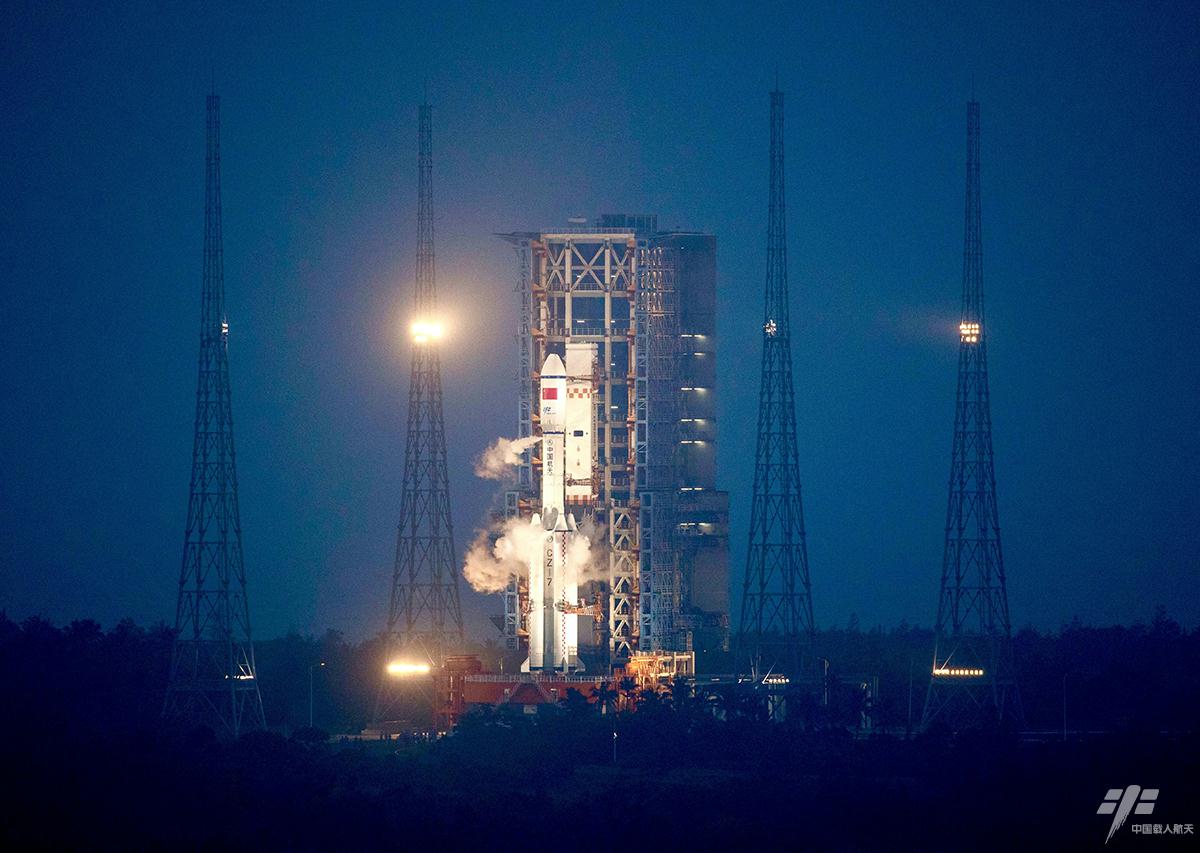 图1:搭载天舟一号货运飞船的长征七号遥二运载火箭矗立在发射塔架上(赵彦勋 摄)