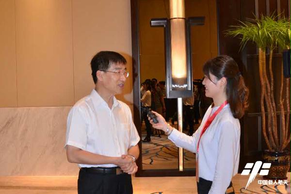 图:中国载人航天工程副总指挥张育林接受采访。 (张杰 摄)
