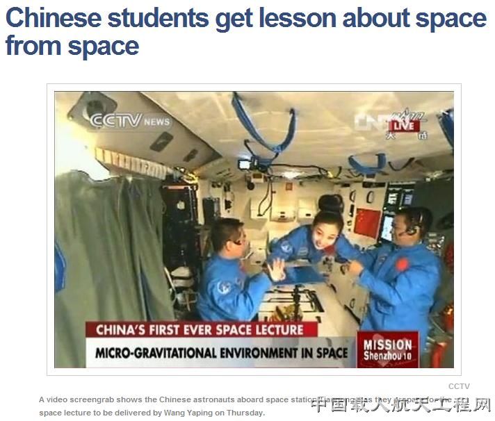 【美国国家广播公司新闻网6月21日报道:中国学生接受太空授课】