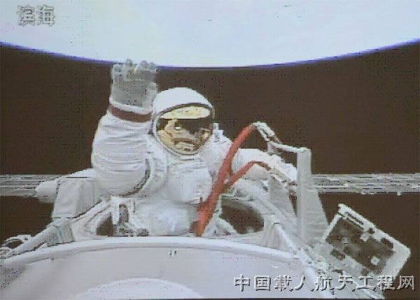 图为神七航天员翟志刚执行出舱任务
